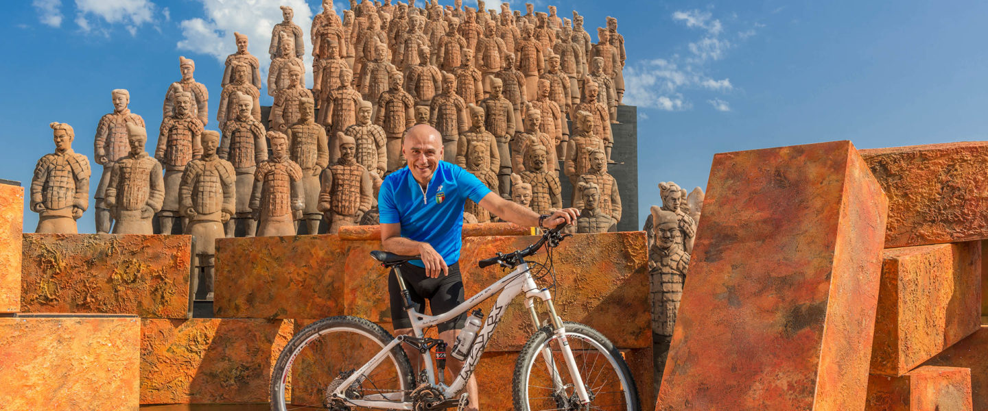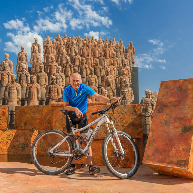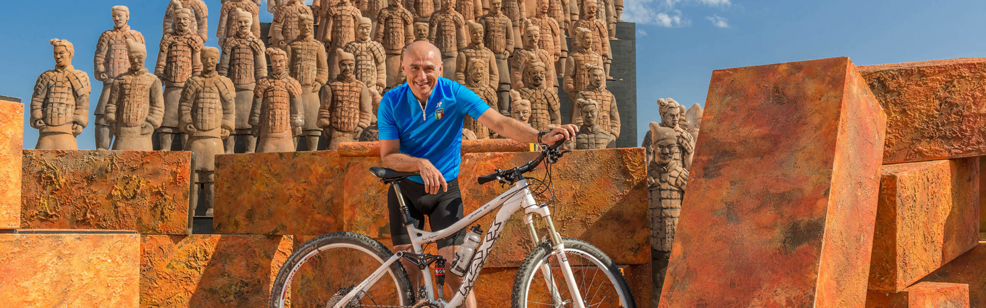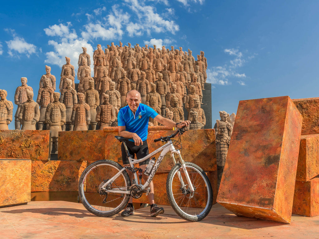 Dirigent Paolo Carignani mit Bike auf der Seebuehne der Bregenzer Festspiele, Turandot 2015/16 © Udo Bernhard