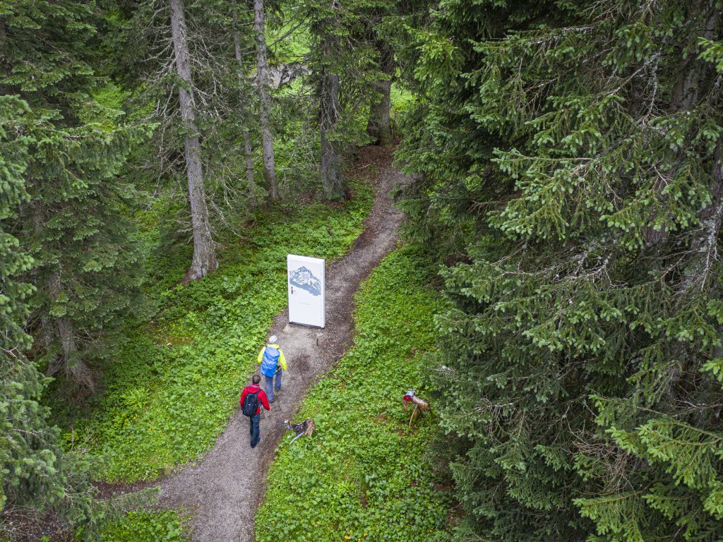 Für die schönsten „Was ist denn das?“-Momente aber haben in den vergangenen drei Sommern die Türen gesorgt, die neun Künstler aus fünf verschiedenen Ländern entworfen hatten. Auf einer waren Zeilen aus einer Erzählung geschrieben, auf einer anderen klebte ein kleines Schild mit dem Wort „frei“, was unter dem endlos gespannten Himmel über Lech sofort Assoziationen auslöste. Und noch eine andere Tür sah aus wie eine – ganz normale weiße Tür. Erst wenn man dicht vor ihr stand, entdeckte man ein Guckloch, durch das man hindurchsehen konnte. Die scheinbar unendliche Welt der Gipfel und Grate wurde dann plötzlich ganz klein und überschaubar. Im Herbst 2019 wurden die Türen vom Berg geholt. Jetzt kann man sie sich bei ihren Türpaten anschauen, bei denen sie einen neuen Standort gefunden haben.