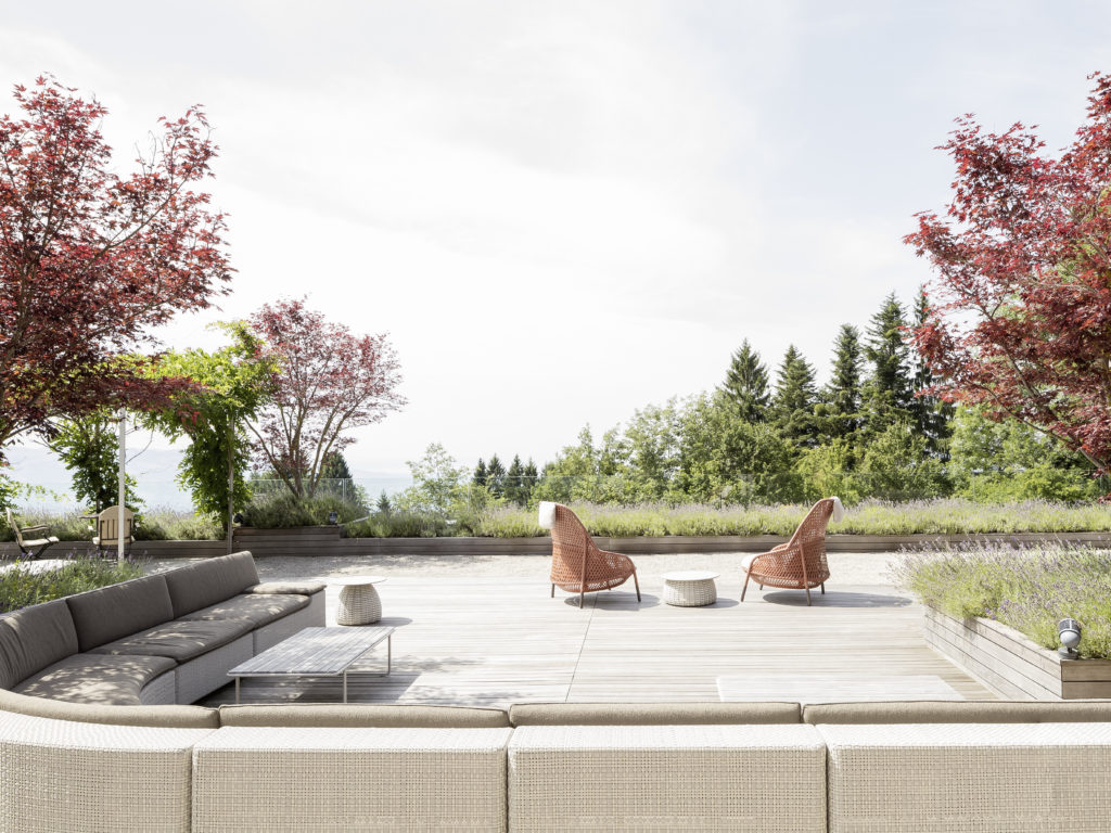 Das Rickatschwende F. X. Mayr Health Retreat liegt in unvergleichlicher Panoramalage oberhalb der Stadt Dornbirn. Es besteht aus aus dem dunkel gekleideten Haupthaus und einem mit hellen Holzschindeln umhüllten Nebenhaus. Der Bau mit viel Holz, Stein und Glas fügt sich harmonisch in die Umgebung ein. Eine klare Formensprache, viel Licht, edle Materialien und ein traumhafter Ausblick schaffen Platz für sinnliche Erlebnisse und Wohlbefinden.