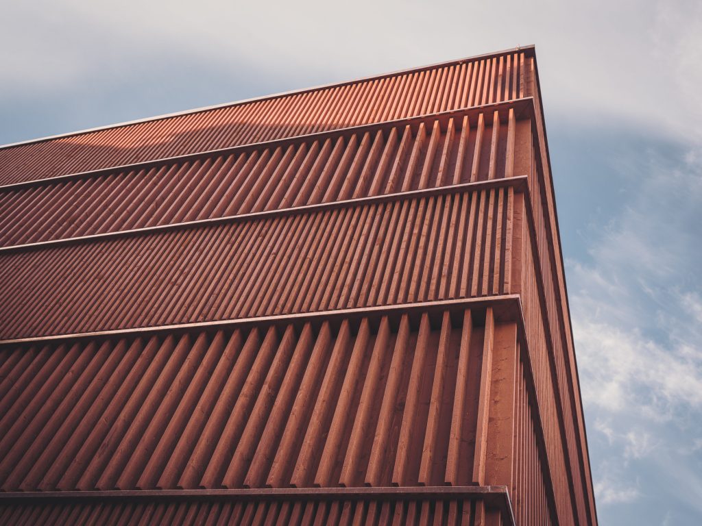 Das Holzhybridhaus ist mit seiner Höhe und Größe an den bestehenden baulichen Bestand der Umgebung angepasst. Auch die Farbe der Fassaden – ein warmes Rostrot – ist an einigen benachbarten Holzhäusern bereits zu finden.