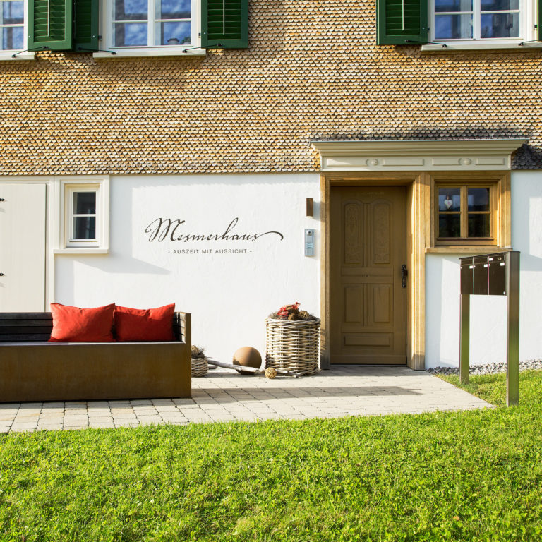 Nostalgie, Romantik und modernes Design können durchaus harmonieren. Ein Beweis dafür ist das aufwändig renovierte Mesmerhaus in traumhafter Aussichtslage in Bildstein. Der Ort Bildstein liegt auf einem sonnigen Höhenzug über dem Vorarlberger Rheinthal zwischen Bregenz und Dornbirn. Bildstein mit seiner barocken Wallfahrtskirche gilt als einer der schönsten Aussichtspunkte Vorarlbergs mit Sicht auf den Bodensee, die Schweizer Bergen und in den Bregenzerwald.