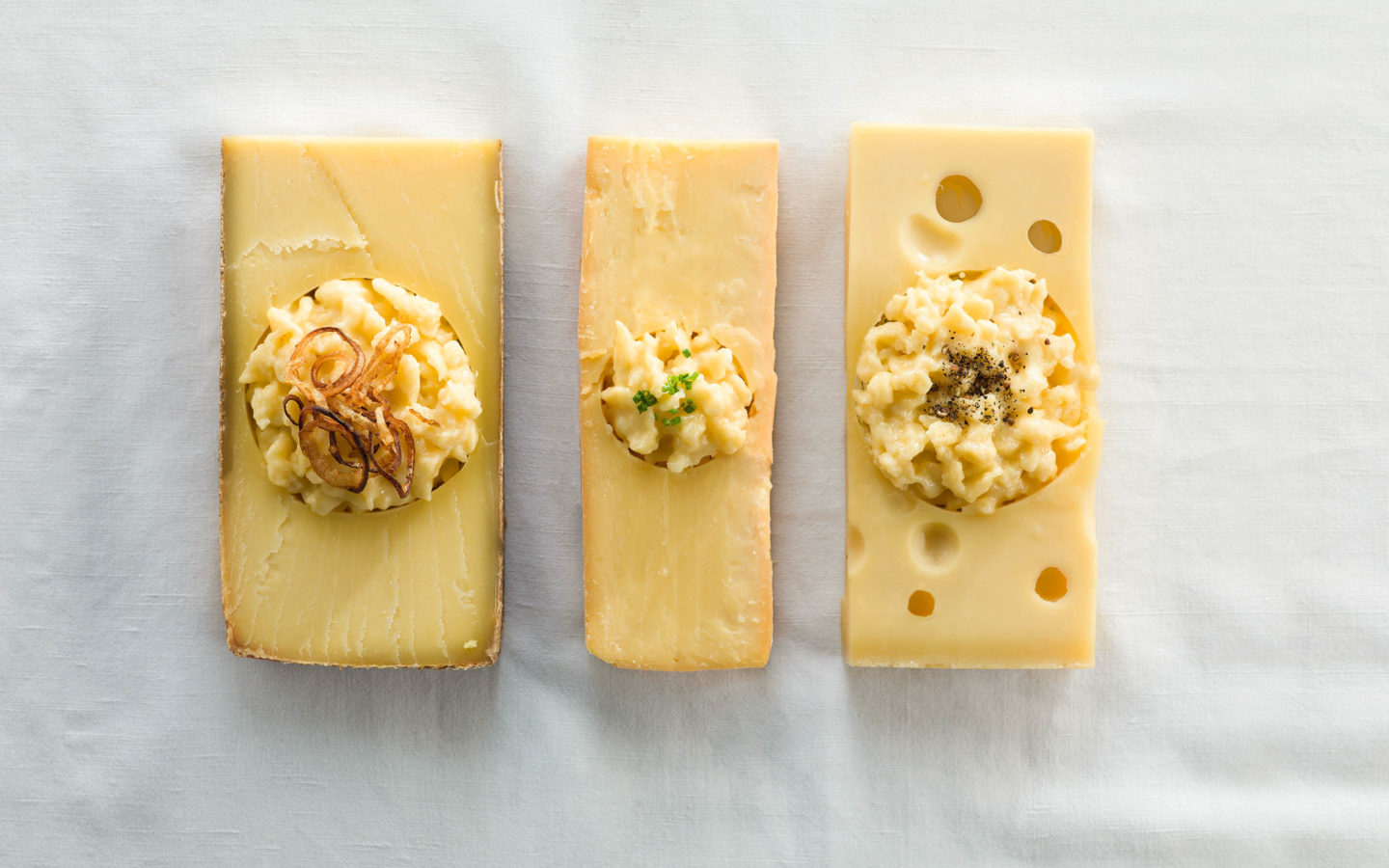 Wer’s selbst einmal probieren möchte: Mit einem Knöpfler (eine Art Spätzle-Reibe) wird der Teig direkt ins kochende Wasser gegeben. Spätzle steigen zur Wasseroberfläche auf, wenn sie gar sind. Dann kann man sie mit einer Kelle abschöpfen. Als Krönung kommen bis zu vier Sorten würzige und milde Berg- und Alpkäse hinzu, im Montafon auch Sura Kees. Serviert wird die deftig-würzige Spezialität in einer Brenta oder Gepse, der traditionellen Holzschüssel. Dazu gibt es Kartoffelsalat, grünen Salat oder selbst gemachtes Apfelmus.
