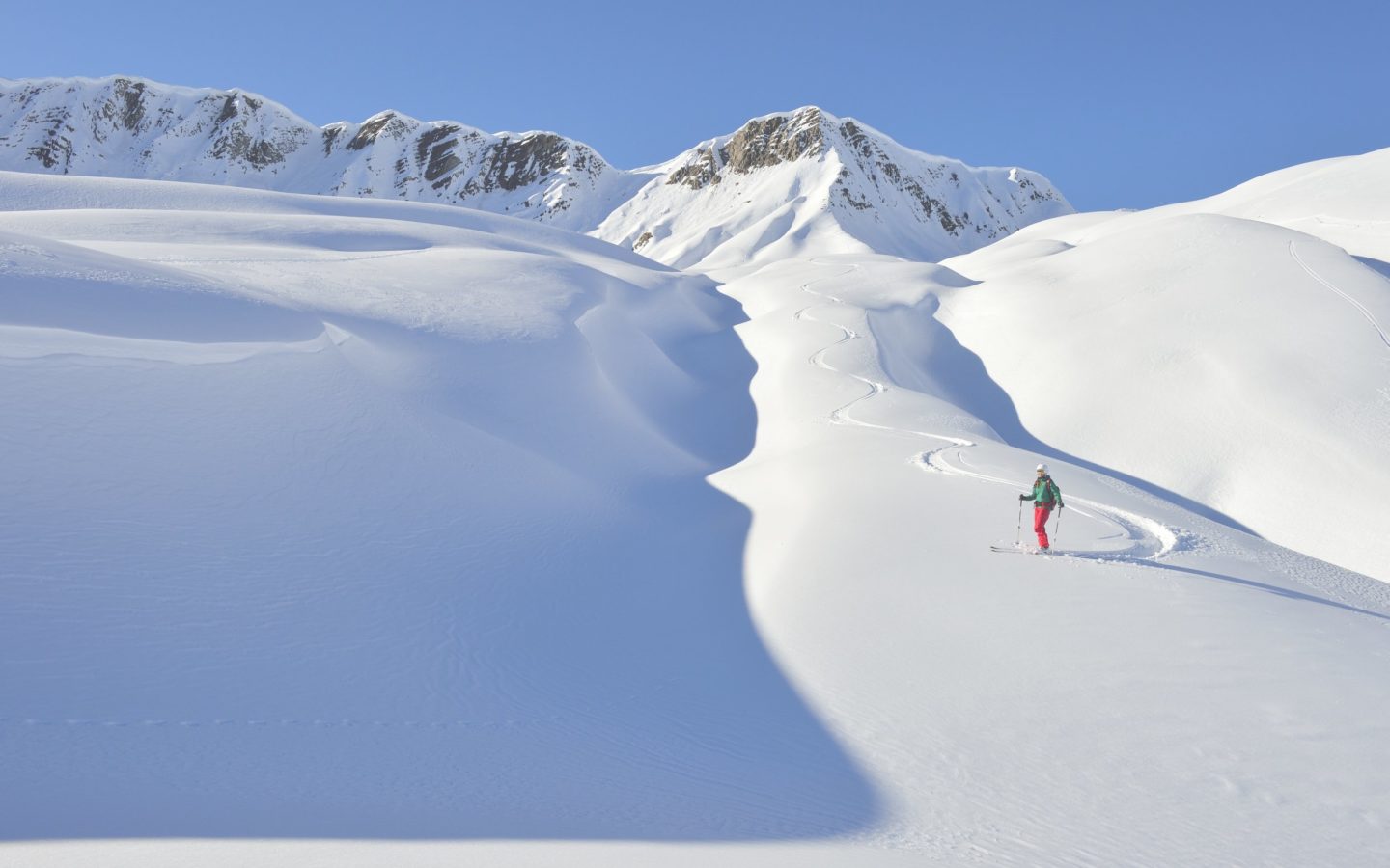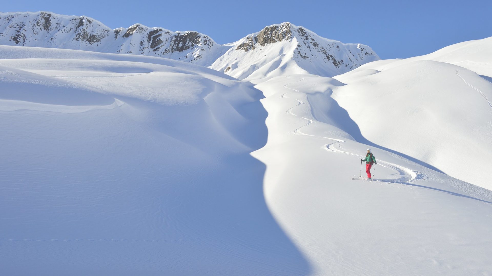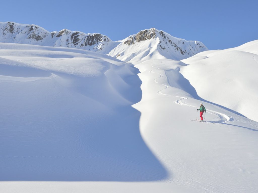 Woher das kommt, dürfte nicht allzu schwer zu erraten sein: Nadine Wallner wuchs in Reichweite des Arlbergs auf, konnte schon als Kind Ski fahren wie ein Irrwisch, der Vater Bergführer, auch der Bruder ein Schneeverrückter: „Die Berge waren mein Spielplatz.“ Dann der schwere Unfall in jungen Jahren, der Skistock bohrte sich in die Seite, die Milz musste raus, der Traum von der Karriere im alpinen Skisport ausgeträumt. Doch als Nadine Wallner wieder auf den Brettern stehen kann, landet sie beim Freeriden. „Heute bin ich froh, beim Alpinen Skifahren ist schon eine sehr große Disziplin gefragt!“ In ihrem Sport hingegen kommt es nicht auf Zeiten an, da geht es auch nicht in erster Linie um Konkurrenz. „Beim Freeriden kommt es darauf an, dass du dein eigenes Ding machst“, sagt Nadine Wallner und beschreibt die Faszination ihrer Sportart als goldenen Schnitt aus Mutprobe und kreativem Stilwillen.