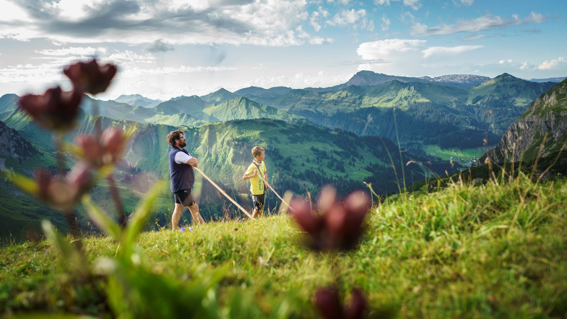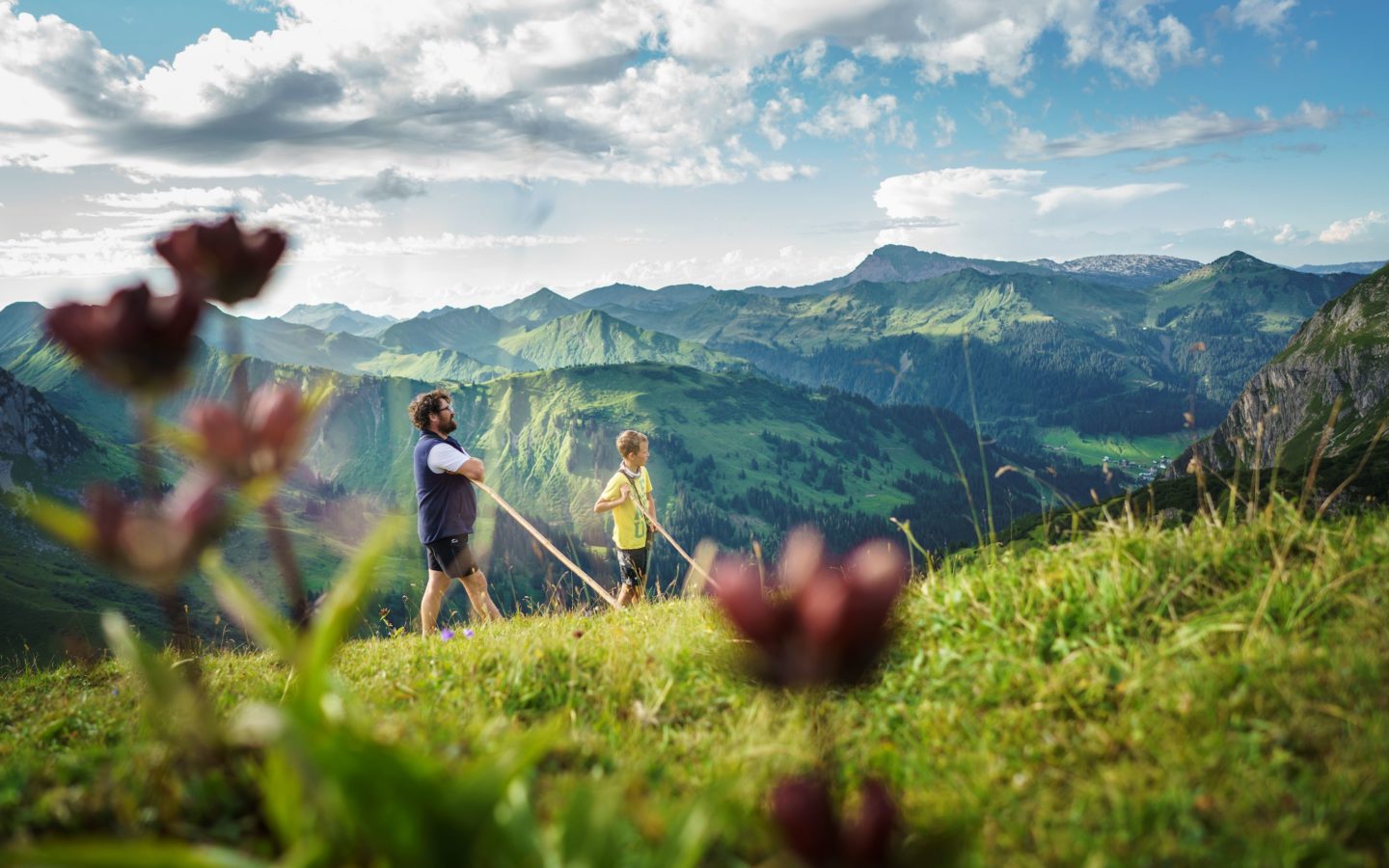 Wolfgang Ott, hier mit dem Junghirten Magnus. Auf der Bärgunthochalpe im Kleinwalsertal kümmern sich beide während der Sommermonate um das Vieh.