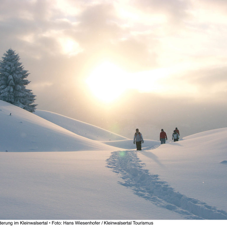 Ganz viel Schneevergnügen bringt der Winter. Die Skigebiete beginnen in den Dörfern und reichen hinauf bis auf 2.200 Meter Seehöhe. Auch ein grenzüberschreitendes Skigebiet gibt es: Vom Kleinwalsertal kann man bequem nach Oberstdorf in Deutschland schwingen. Abwechslung verheißen attraktive Snowparks, bestens präparierte Winterwanderwege, Loipen und Rodelbahnen.