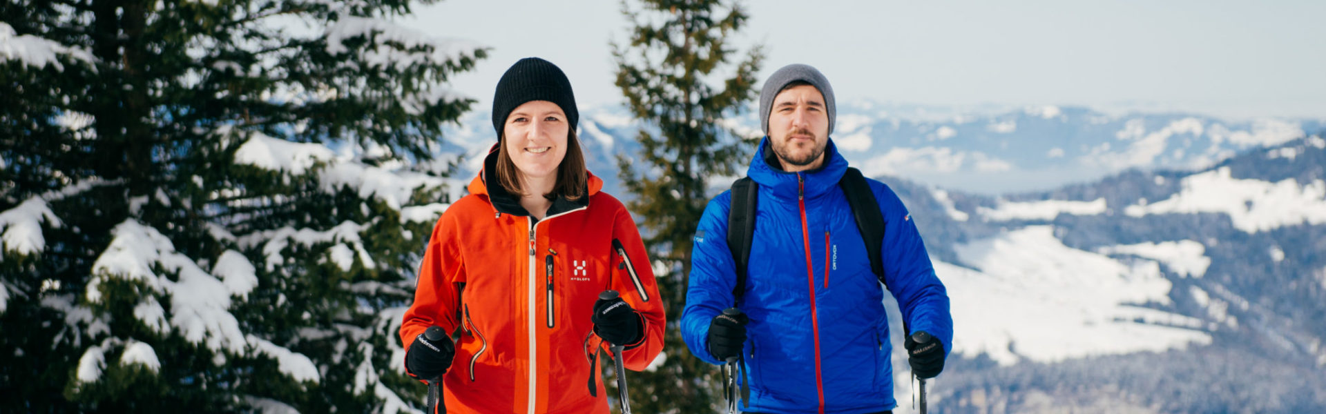 Ausrüstung: Festes Schuhwerk und Schneeschuhe, warme Kleidung, Sonnenschutz, Wanderstöcke sowie ein LVS-Gerät werden empfohlen. Handy für den Notfall.
