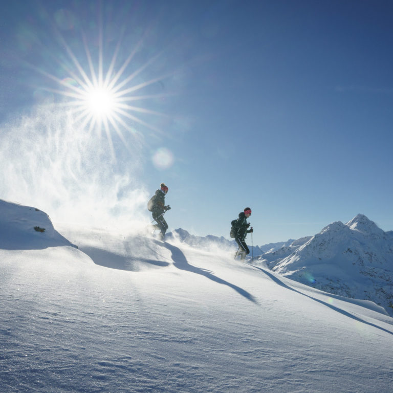 Schneeschuhe können bei Sport Milanovic bei der Talstation Sonnekopf ausgeliehen werden