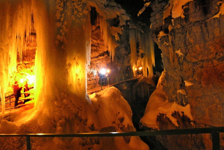 Eine Fackelwanderung durch die vereiste Breitachklamm im Kleinwalsertal ist unvergesslich. Der Feuerschein lässt das Eis geheimnisvoll leuchten und lässt die Eisgebilde, Eiszapfen und Höhlen in einem anderen, faszinierenden Licht erscheinen. Ein mystisches Wintererlebnis.
