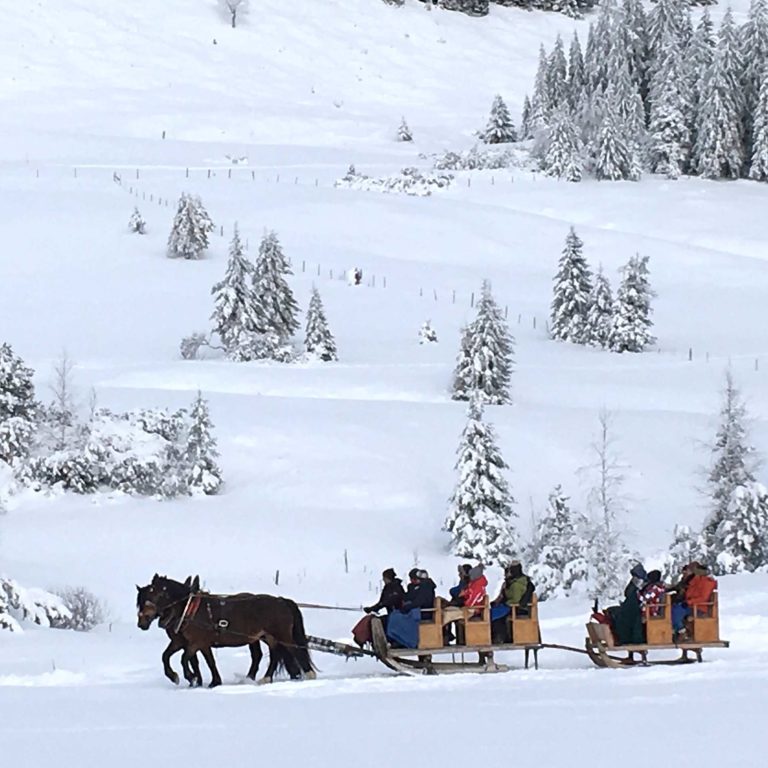 Romantik pur. Ob bei Tag oder in der Nacht – eine Fahrt mit dem Pferdeschlitten ist immer ein Höhepunkt im Winterurlaub. In Lech Zürs können Sie Ihre Fahrt auch individuell gestalten. Fragen Sie Ihren Kutscher.
