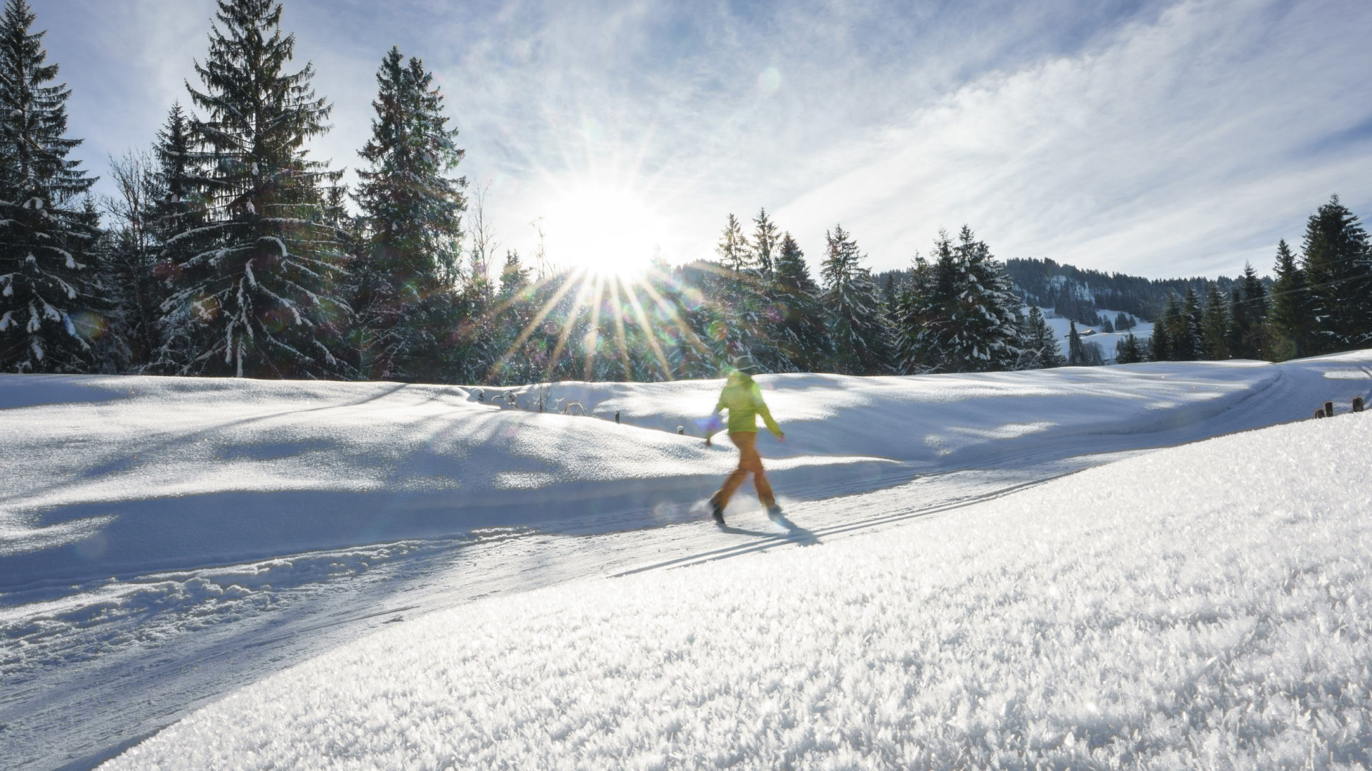 Die Luft ist frisch, der Schnee glitzert, die Stille tut richtig gut. Abseits der Skipisten entwickelt der Winter eine eigene Qualität. Besonders dann, wenn man sich gehend durch die Landschaft bewegt. Beim Winterwandern werden von Schritt zu Schritt die Sinne feinfühliger.